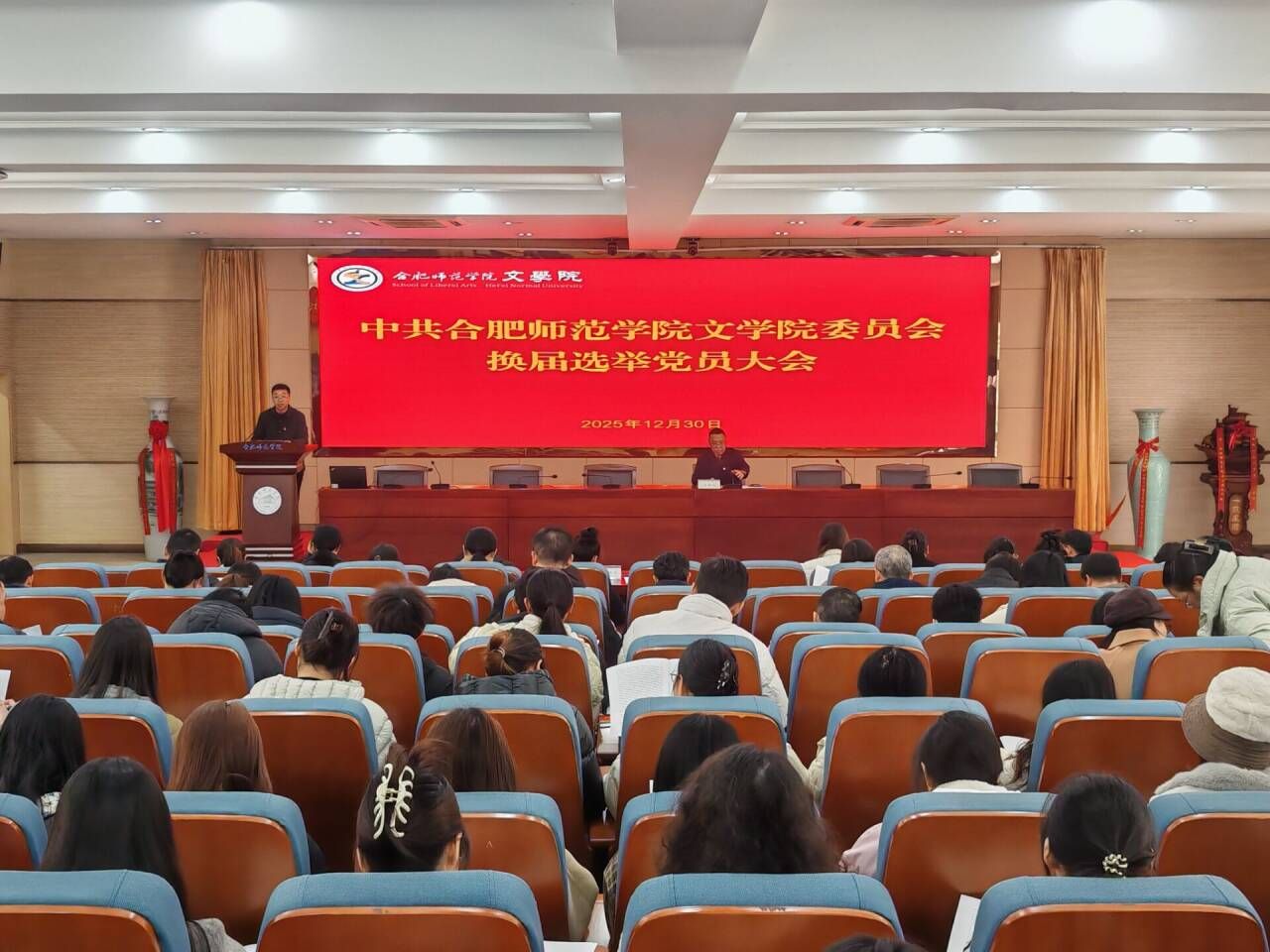 2025年12月30日上午,yl9193永利集团在锦绣校区学术报告厅召开全体党员大会,选举产生新一届党委委员、纪委委员。大会由学院院长何旺生主持。