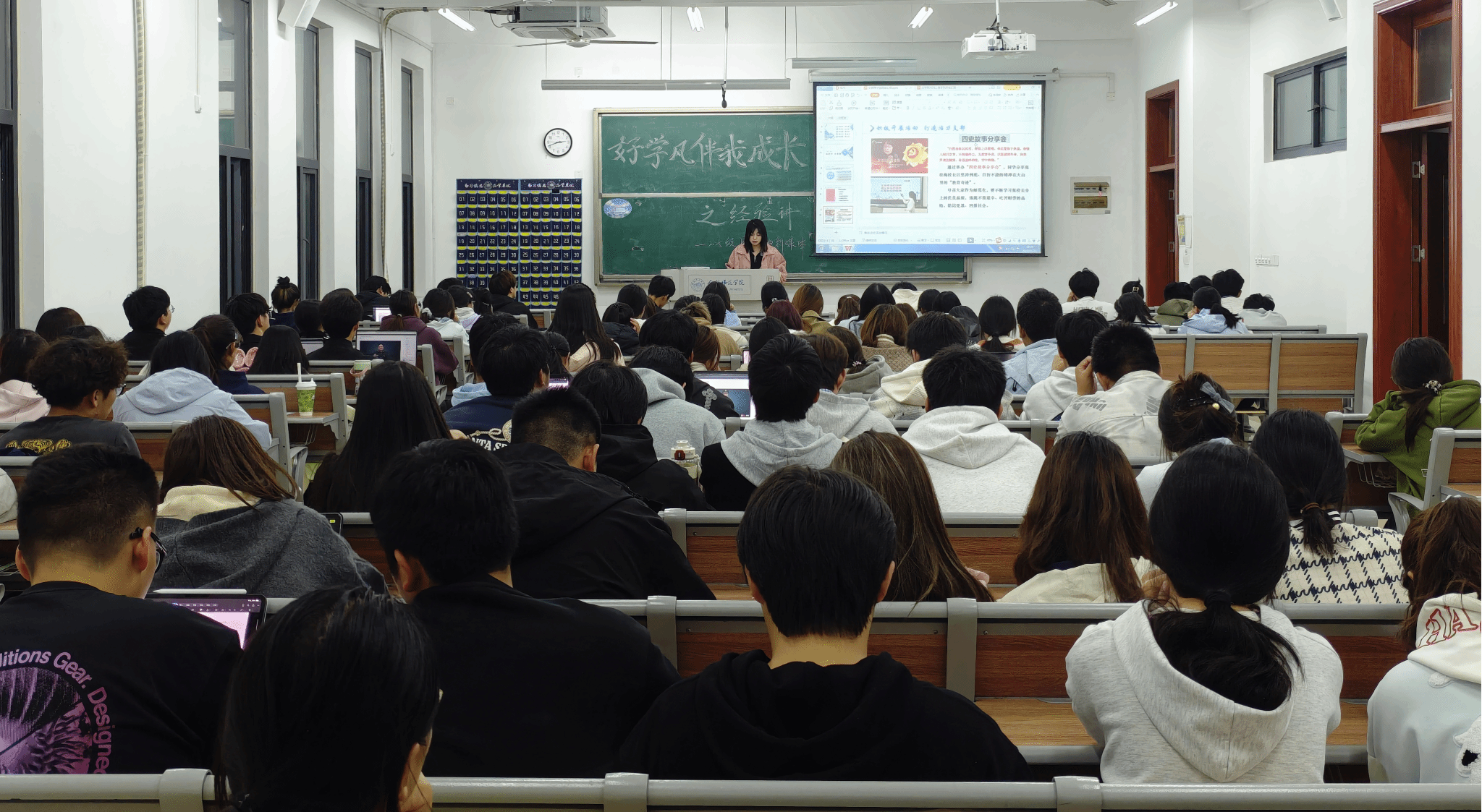 示范带动环节立足学生成长实际需求,针对新生专业认知迷茫的问题,依托“好学风伴我成长”主题活动,邀请高年级学长学姐分享实践经验,全面传授专业学习方法、时间管理技巧、学科竞赛备赛要点等实用内容,帮助新生快速适应专业学习节奏,营造勤学笃行的优良学风。