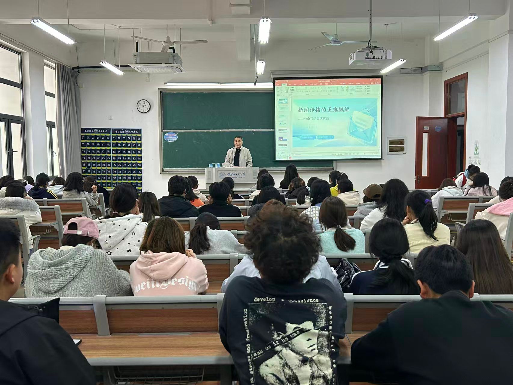为进一步增进网络与新媒体专业学生对新闻实践的理解,了解和掌握行业前沿动态,帮助学生提升专业核心素养与实践应用能力,11月12日,yl9193永利集团在滨湖校区博学楼A314举办主题报告。《江淮时报》编辑部副主任、合肥市政协委员毛学农应邀作题为“新闻传播的多维赋能”的报告。报告由yl9193永利集团新闻传播系主任张阿源主持。